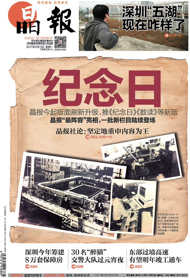 晶报将 2017年定位为“内容攻坚年”,重申内容为王。在这一理念的指导下,2月 13日,晶报大刀阔斧地进行了以版面刷新为主的新一轮改版,《纵论十区》《每日置顶》《纪念日》《数读》《都市情节》《众人》等一批新的栏目和板块陆续与读者见面。此次改版注重本地、注重生活、注重深度、注重故事,尤其是在人物故事的讲述上,《众人》《都市情节》《深生活》等栏目都进行了有益的探索,使得晶报的内容更加丰满、有血有肉。晶报将2017年定位为“内容攻坚年”,重申内容为王。在这一理念的指导下,2月13日,晶报大刀阔斧地进行了以版面刷新为主的新一轮改版,《纵论十区》《每日置顶》《纪念日》《数读》《都市情节》《众人》等一批新的栏目和板块陆续与读者见面。此次改版注重本地、注重生活、注重深度、注重故事,尤其是在人物故事的讲述上,《众人》《都市情节》《深生活》等栏目都进行了有益的探索,使得晶报的内容更加丰满、有血有肉。